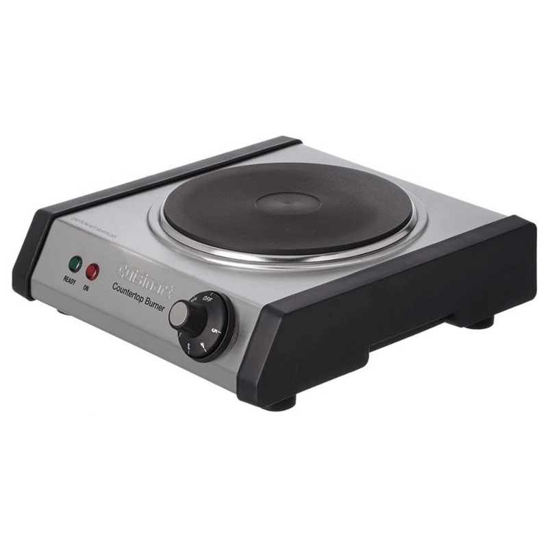 The Cuisinart Cast-Iron Single Burner is a powerful and portable cooking solution that adds extra versatility to any kitchen - or any space without one. With 1300 watts of power, it heats up quickly and maintains consistent high heat, making it easy to cook everything from a quick snack to a full meal. The smooth, coil-less cast iron plate is built for durability and wipes clean effortlessly, while the brushed stainless steel housing adds a sleek, modern touch. The adjustable 6-setting temperature control gives you full flexibility, whether you're keeping food warm or searing at high heat. Perfect for entertaining, holidays, or everyday use, its compact size makes it ideal for dorm rooms, patios, RVs, boats, and small apartments. Nonslip rubber feet ensure stability, and indicator lights let you know when it's on and ready. Whether you're cooking for one or feeding a crowd, this single burner is a smart addition to any kitchen setup.