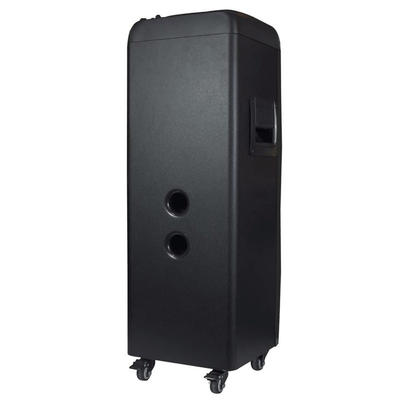 Elevate your audio experience with this powerful IQ Sound TorusFLEX speaker system, perfect for nightclubs, home entertainment, seminars, outdoor events, and more, delivering crisp, immersive sound that fills any space. With Bluetooth 5.0 and True Wireless Stereo (TWS) technology, you can pair two speakers for a full stereo effect, while multiple input options - including USB, Micro SD, AUX, and FM radio - let you enjoy music from virtually any source. Built-in LED lights add energy and atmosphere, and the user-friendly control panel with EQ modes gives you complete control over your sound, along with a recording feature to capture important moments. Designed for portability, it includes built-in wheels and a sturdy handle for easy transport, while the powerful 2x10" woofers and 1x1" tweeter deliver deep bass and clear highs with 100W RMS output. Powered by an 8000mAh rechargeable battery for long-lasting playtime and paired with a convenient remote control, this all-in-one system is ready to bring dynamic sound and style to any event.