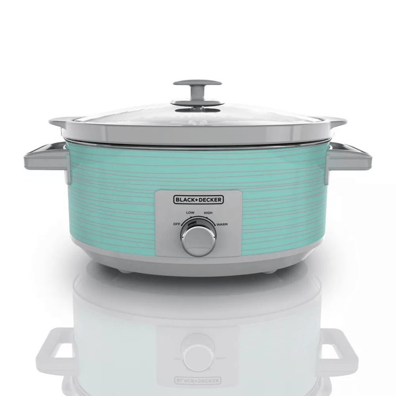 Discover how simple home-cooked meals can be with the BLACK+DECKER 7-Quart Slow Cooker, designed to handle everything from hearty roasts and soups to chili and family-size favorites. Just add your ingredients to the spacious 7-quart stoneware crock and let the steady, even heat do the rest. With three convenient heat settings, you can choose low for all-day cooking, high for faster results, or warm to keep dishes at the perfect serving temperature. Cleanup is easy thanks to the dishwasher-safe stoneware crock and tempered glass lid, while the durable, brightly colored metal exterior brings a pop of style to your kitchen. Complete with included recipes to inspire easy meals, this slow cooker makes everyday cooking both effortless and enjoyable.
