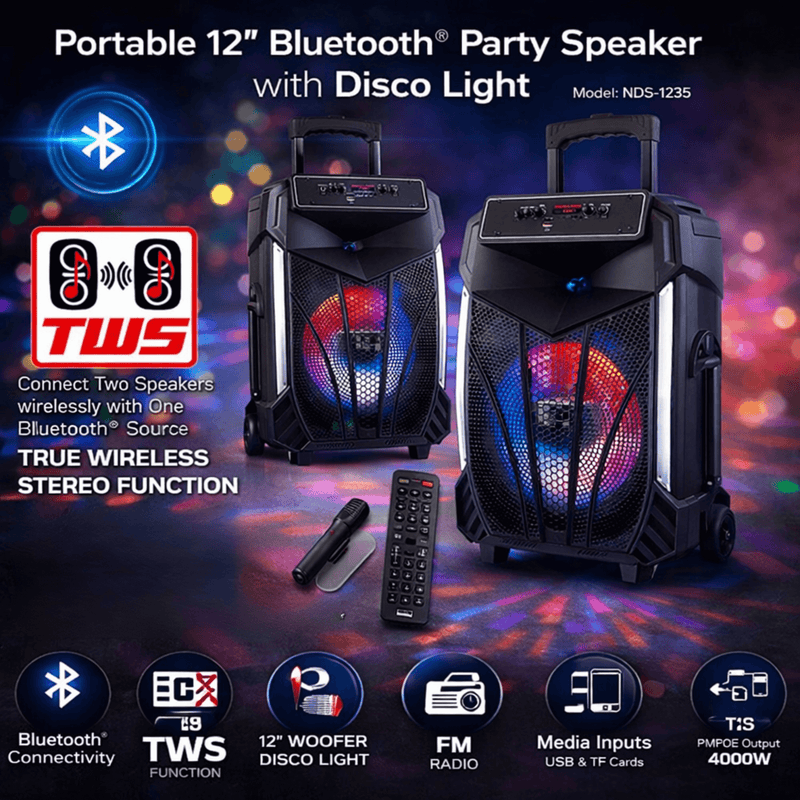 - Product Name: Portable 12" Bluetooth Party Speaker with Disco Light
