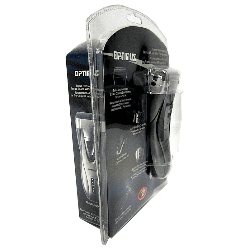The Optimus Curve 50046 Rechargeable Wet/Dry Men's Shaver is designed to deliver a smooth, comfortable shave with its triple-blade system, stainless steel foil, and counter-directional blades that adjust to the contours of your face. Featuring Super Lift and Cut technology, it lifts hairs for a closer finish, while the pop-up trimmer makes grooming mustaches and sideburns effortless. This versatile shaver can be used corded or cordless with the included AC charger and offers a three-stage cutting system for precision. It's easy to clean under running water and comes with a soft travel bag and cleaning brush for convenience. An LED battery power and charge progress indicator keeps you updated, ensuring reliable performance whether at home or on the go.