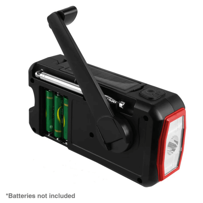 • Multi-Power Inputs: Built-in Rechargeable Battery/ Solar Panel/ Hand Crank/3 AAA Batteries (not included)/USB Type-C Charging