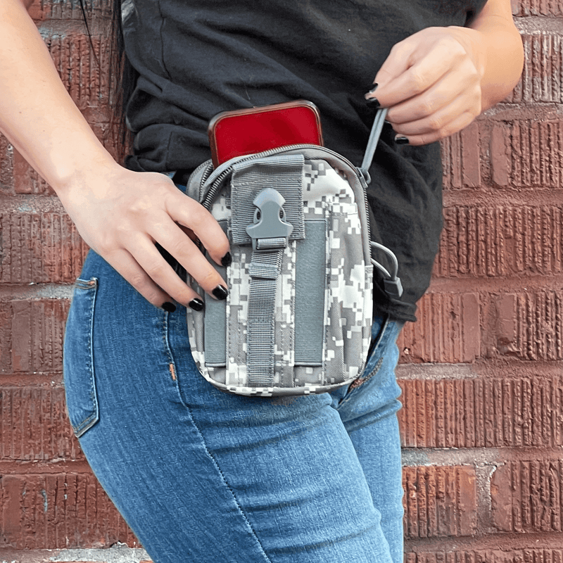 MULTI-USE STORAGE: This MOLLE faux military waist bag is ideal whether you need to carry your meds with you in a secure place, or whether you want a place to keep your cell phone and power bank safe from the elements. Keys, wallets, glasses, contact lens containers, medical masks, and jewelry are just a few of the other items that this multiple-pocketed bag can hold while you’re busy living your best life.